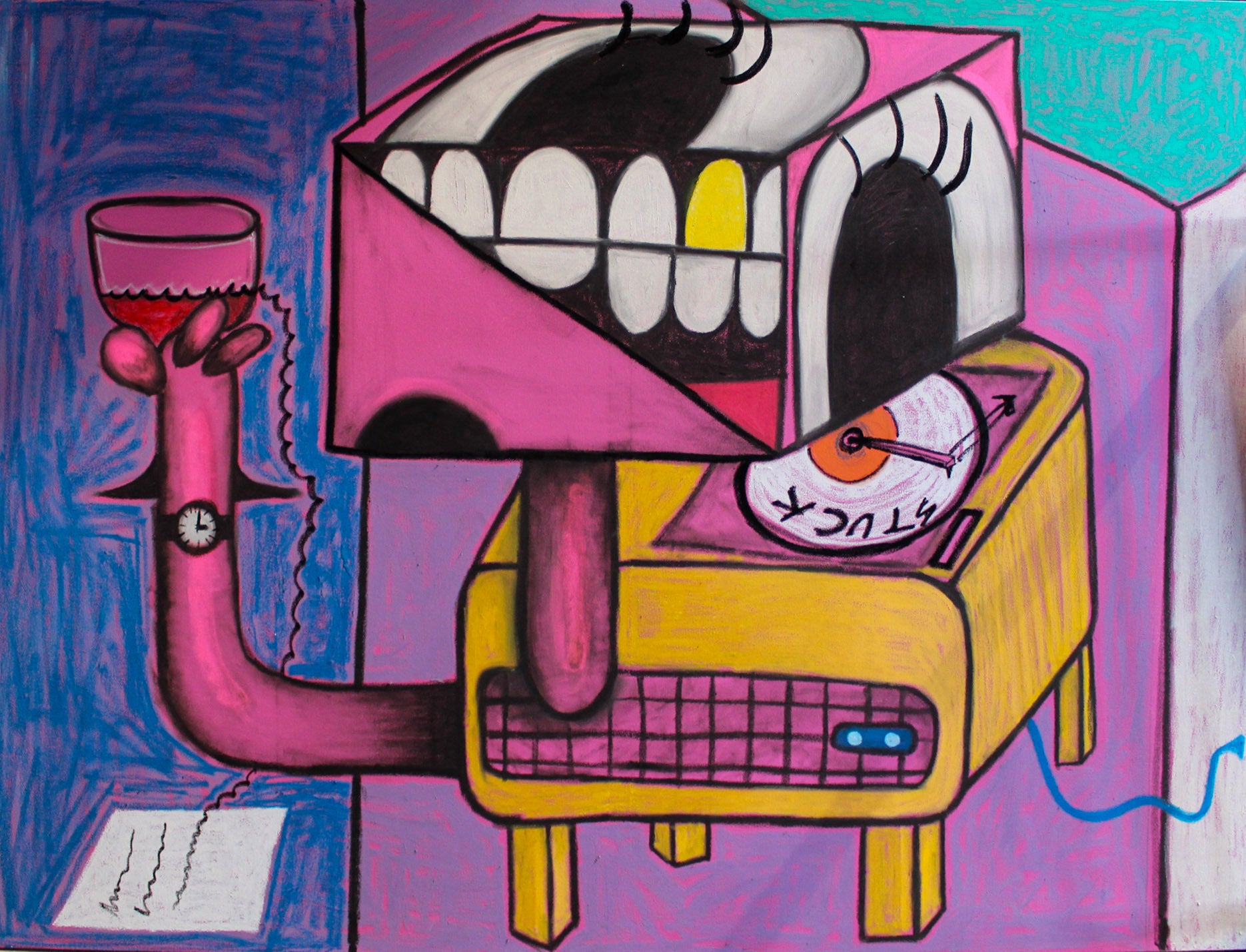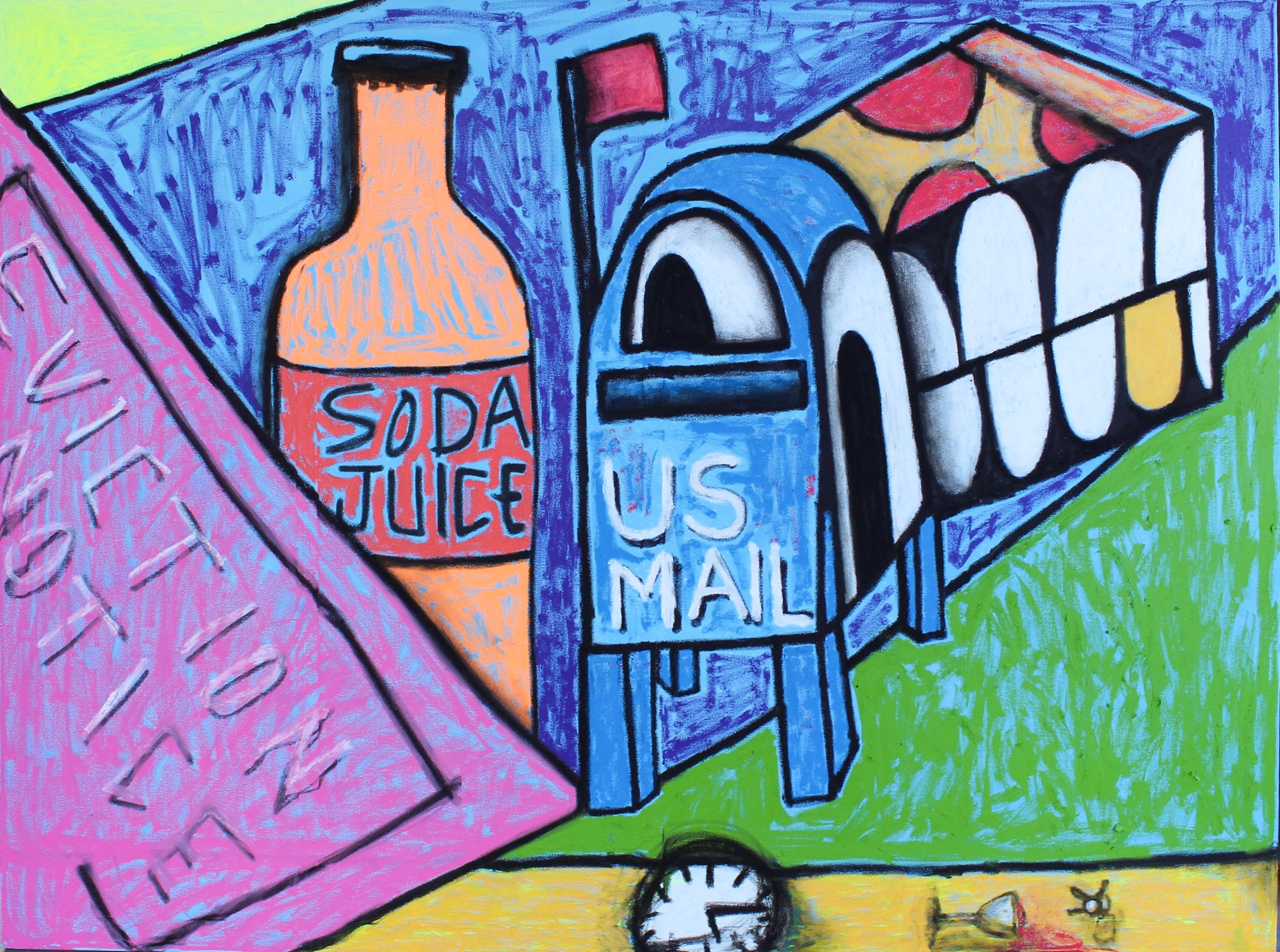 A.J. Smith, b. 1999 is a contemporary black artist who explores abstraction through childlike shape and symbolism. Smith juxtaposes bright, bold ideas with a silence that mimics his inner world. As a licensed mental health counselor, former collegiate athlete and artist he romanticizes split identities as a structure of his work.